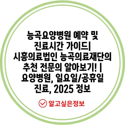 능곡요양병원 예약 및 진료시간 가이드| 시흥의료법인 능곡의료재단의 추천 전문의 알아보기! | 요양병원, 일요일/공휴일 진료, 2025 정보